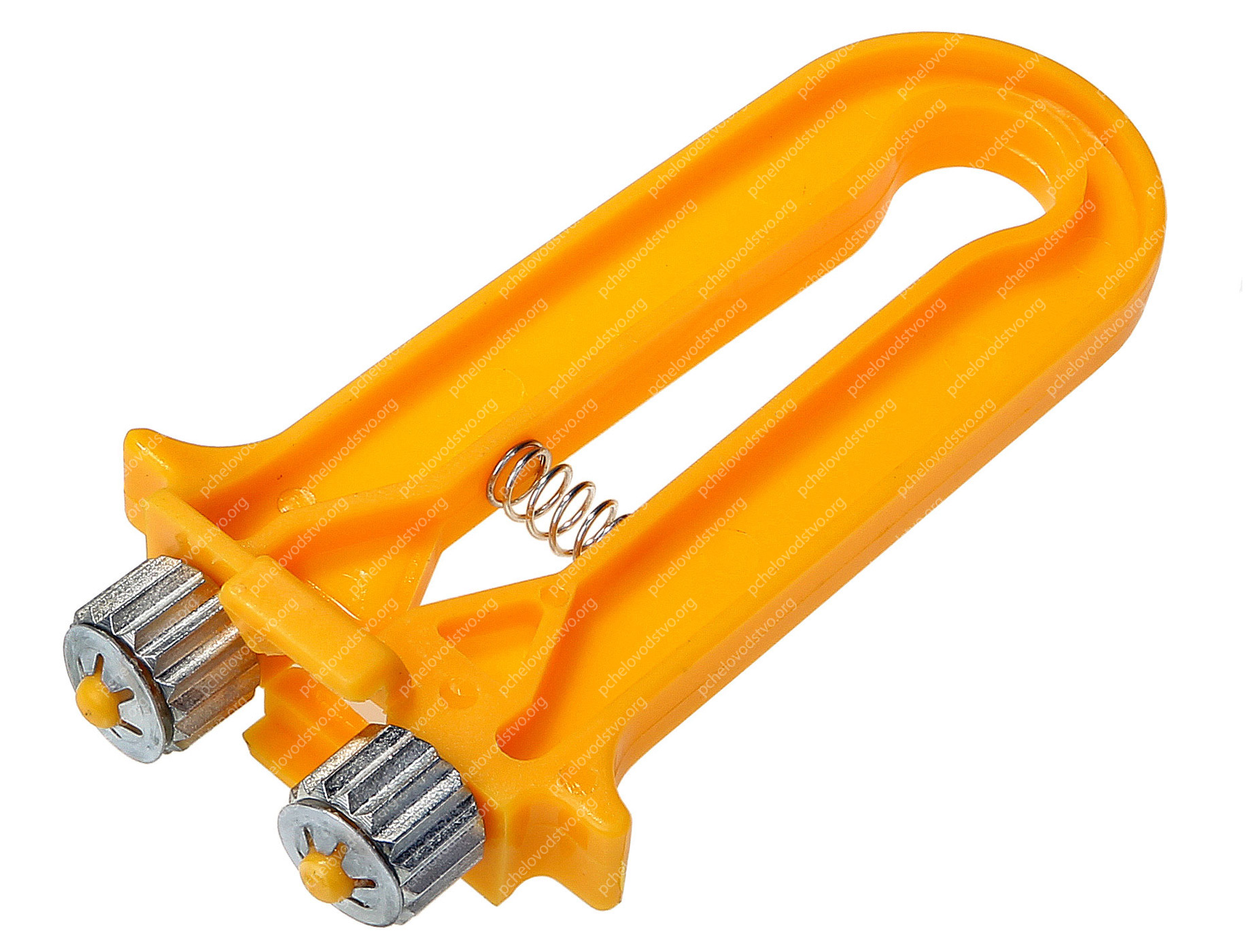 Это приспособление применяется при восстановлении натяжения проволоки в ульевой рамке. Проводя данным устройством по проволоке внутри рамки, предварительно прижав проволоку между зубчатыми колёсиками, убирается ее слабина за счет полученных изгибов и длина проволоки заметно сокращается, тем самым, приобретая натянутость. Плоскость волн проволоки должна быть в плоскости вощины.