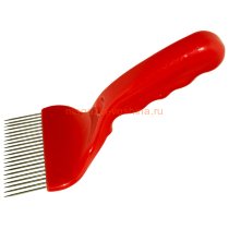 Ручка вилки изготовлена из нейлона красного цвета, в него надежно впаяны прямые иглы из нержавеющей стали. Достаточно тонкие иглы позволяют аккуратно распечатывать соты с минимальными повреждениями.